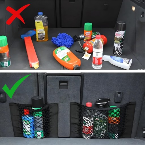 Koniec z rozlanymi płynami i chaosem w bagażniku! Dzięki siatce możesz w końcu zorganizować przestrzeń w aucie i mieć wszystko, co potrzebne zawsze pod ręką.