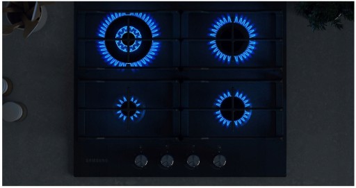 Płyta gazowa Samsung wyposażona jest w 4 palniki, które dostarczają imponującą moc 8,8 kW. Mając do dyspozycji tak dużą moc, możesz wygodnie przygotowywać potrawy wymagające na przykład szybkiego i intensywnego podsmażenia składników. Gotowanie wody, a także wszelkich potraw również jest o wiele szybsze. W zależności od tego, czy po prostu się spieszysz, czy też chcesz zachować pyszny smak jedzenia, z pewnością znajdziesz palnik spełniający twoje potrzeby.