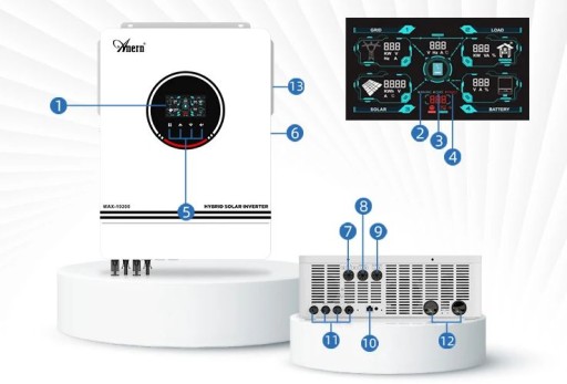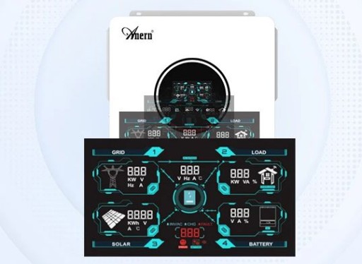 Panel wyświetlacza posiada intuicyjny, czytelny interfejs przeznaczony do monitorowania pracy inwertera.