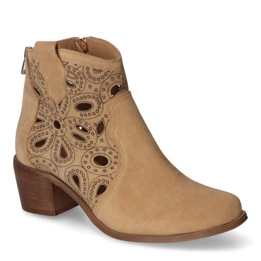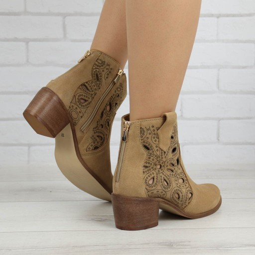 Ажурные ботинки Lewski на высоком каблуке бежевого цвета из замши B 41