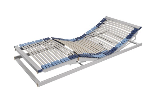 Solidna konstrukcja stelaży ma kluczowe znaczenie podczas użytkowania łóżka. To one odpowiadają za prawidłowe wsparcie dla ciała i zapewniają wentylację materaca. Listwy elastyczne w ilości 42 sztuk osadzone są w potrójnych, gumowych uchwytach w ramie stelaża dodatkowo wzmocnione pasem. Uchwyty mocujące posiadają specjalną amortyzację, podnosząc komfort. Dodatkowo w przypadku połączenia dwóch stelaży nie powstaje w środkowej części martwa strefa. Listwy gięte tego stelaża zostały wykonane z drewna bukowego, klejonego warstwowo, pokrytego folią dekoracyjną w kolorze srebrnym. Jego zaletą jest płynna regulacja elektryczna wysokości podgłówka i podnóżka. Siłownik jest zasilany bezpiecznym napięciem stałym 24V. Funkcja standby wprowadza układ zasilacza w stan czuwania, ogranicza pobór energii elektrycznej i daje możliwość opuszczenia przy braku zasilania. W części środkowej ma dodatkową regulację twardości. Stelaż trioflex de Luxe jest dostępny w wersji z pilotem bezprzewodowym. Stelaż może być sterowany za pomocą smartfona lub tabletu. Sprzedawany w wersji zmontowanej.