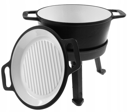 ✅ Wnętrze kociołka, jak i patelni grilowej zostało pokryte powłoką emaliowaną, odporną na wysokie temperatury, zapobiegającej przywieraniu, odpornej na ścieranie.