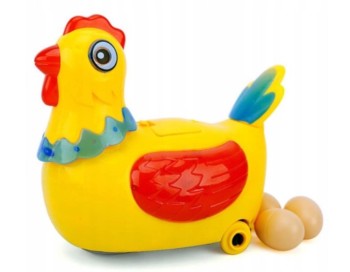 Wesoła interaktywna kura, która znosi jajka. Na plecach znajduje się otwór, przez który wrzuca się jajka.. Bardzo ciekawa zabawka która z pewnością zaskoczy dziecko. Kurka z pewnością przyczyni się do poznawania zwierząt przez najmłodszych oraz integrowania się z nimi.