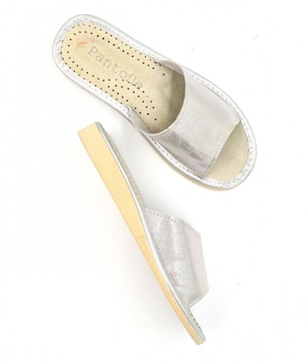 Wewnętrzna część kapcia wykonana jest ze skóry naturalnej. Zewnętrzna z eko skóry. Są lekkie i wygodne odpowiednie dla osób w każdym wieku. Występują w 2 kolory: złoty i srebrny