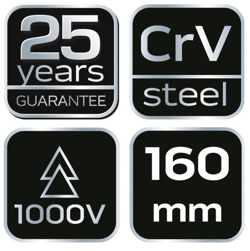Obcinak do kabli 1000V NEO (nr ref. 01-233) o wymiarze 160 mm. Atestowane do pracy pod napieciem do 1000 V. Wysokogatunkowa stal chromowo-wanadowa zapewnia długoletnią wytrzymałość szczęk. Dwumateriałowa, ergonomiczna rękojeść podnosi komfort użytkowania. Niezawodność produktu potwierdza 25-letnia gwarancja. Marka NEO spełnia oczekiwania profesjonalistów.