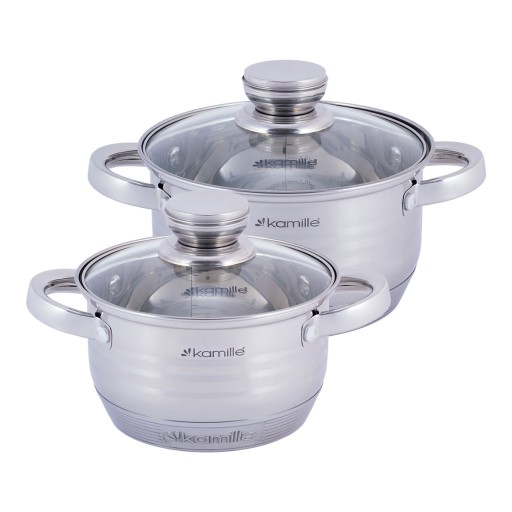 Zestaw zawiera garnki o różnych rozmiarach i pojemnościach, co pozwala na przygotowanie różnorodnych i apetycznych posiłków z wielu składników. Komplet garnków wykonany jest z wysokiej jakości stali nierdzewnej, dzięki czemu posłuży nam na dłuższy czas. Indukcyjne dno zapewnia szybkie nagrzanie i równomierne rozprowadzenie ciepła co przyczynia się do oszczędności czasu oraz pieniędzy. Skala pomiaru wewnątrz garnka ułatwi precyzyjne odmierzenie i dodanie składników, aby nasza potrawa wyszła jak najlepiej.Pokrywki wykonane z żaroodpornego szkła z odpowietrznikiem.
