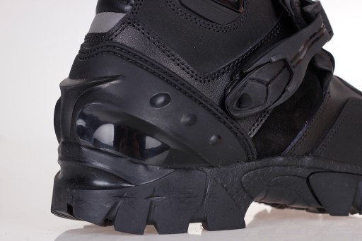 Wysokie turystyczne obuwie wyposażone w dużą ilość wbudowanych ochraniaczy. Gruba podeszwa zapewnia dobre trzymanie na podnóżku oraz świetnie sprawdzi się w trudnym terenie. Dobrze stabilizują stopę i zapewniają wysoki poziom ochrony.
