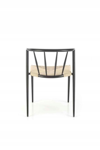 Wyjątkowe krzesło K515 firmy Halmar. Stelaż metalowy, malowany metodą proszkową. Czarne, pionowe szczebelki oparcia kontrastują z jasnobeżowym sznurkiem siedziska, a ozdobny splot sprawia, że krzesło prezentuje się wyjątkowo. Kolejnym atutem jest możliwość sztaplowania - składania krzeseł w stos w momencie, gdy nie są używane. Krzesło prezentuje się świetnie we wnętrzach nowoczesnych, w stylu boho czy skandynawskim. Doskonale wpiszę się również we wszystkie wnętrza utrzymane w naturalnym klimacie.