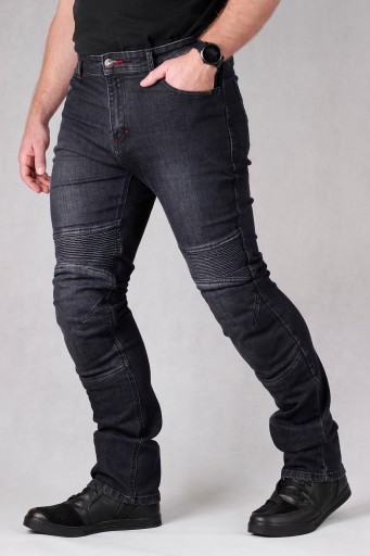 Spodnie motocyklowe o bardzo nowoczesnym kroju. Wysoki poziom bezpieczeństwa zapewniają panele z kevlaru, ochraniacze kolan oraz ochraniacze bioder marki SAS TEC. Bardzo solidne , mocne i bezpieczne jeansy, które jednocześnie świetnie leżą.