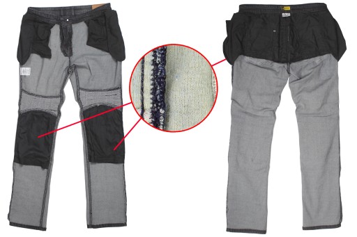 - wewnętrzne podszycia panelami kevlarowymi na pośladkach, biodrach i kolanach
