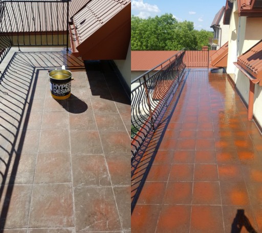 HYPERDESMO-T marki Alchimica to przezroczysta w 100% alifatyczna żywica poliuretanowa, która tworzy przezroczystą, elastyczną warstwę hydroizolacyjną na tarasach, balkonach i werandach.
