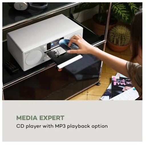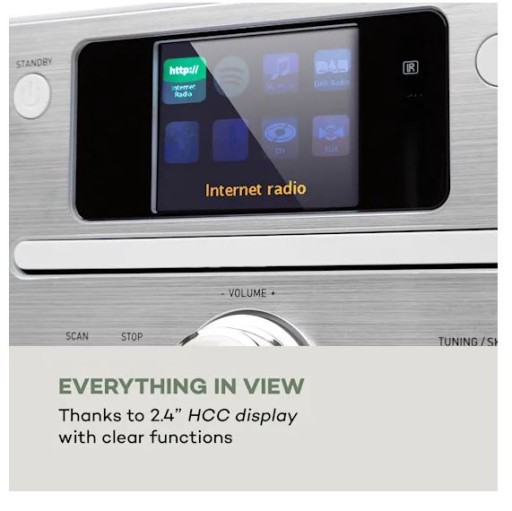 - Świetne możliwości połączenia: wbudowane radio internetowe/DAB+ i UKF oraz pilot zdalnego sterowania