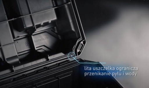 Lita uszczelka w górnej pokrywie zapewnia pyłoszczelność oraz odporność na zachlapanie wodą, dzięki czemu zawartość skrzynki jest chroniona nawet w trudnych warunkach pracy czy niesprzyjających warunkach atmosferycznych;