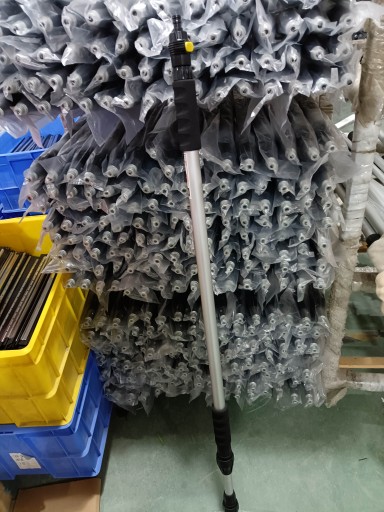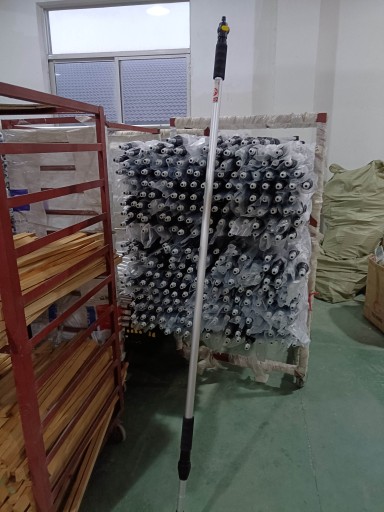 Kij aluminiowy profilowany, przeznaczony do pracy na dużych wysokościach. Zakończony z jednej strony miękką czteropłaszczyznową szczotką do mycia, z drugiej – rączką z piankowymi miękkimi uchwytami, szybkozłączką do podłączenia węża z wodą oraz zawór przepływu wody. Do kija można w bardzo szybki sposób podłączyć wodę.