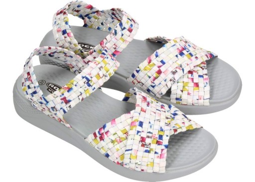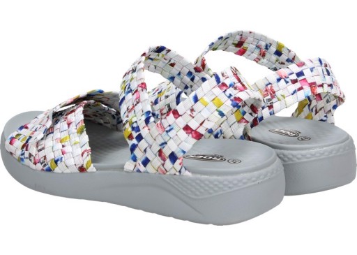 Sandały damskie marki Rock Spring model Erika Primavera w kolorze białym z kolorowymi plamkami. Plecione paski z wyjątkowo elastycznych gumek idealnie dopasowują się do indywidualnego kształtu (tęgości) stopy. Lekkie antypoślizgowe podeszwy z utwardzonego tworzywa wysokiej jakości doskonale amortyzują wstrząsy oraz sprawiają, że buty są niezwykle wygodne. Idealne na sezon letni, skóra może w nich swobodnie oddychać. Buty Rock Spring jednymi z najwygodniejszych butów tego sezonu!