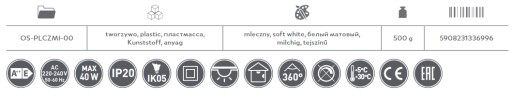 - Klosz z mlecznego tworzywa przeciwdziała efektowi olśnienia.