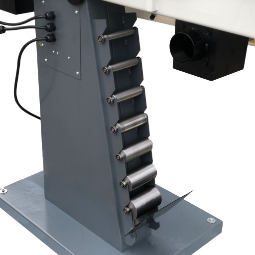 Pulpit wyposażony jest w dźwignię przesuwającą imadło z materiałem ku taśmie ściernej, co pozwala na precyzyjną kontrole głębokości szlifowania.
