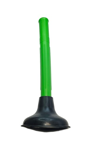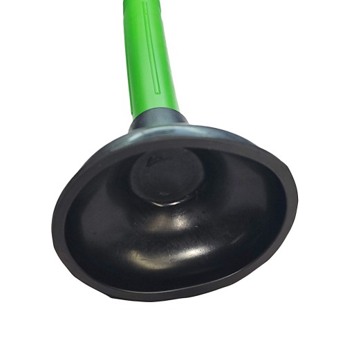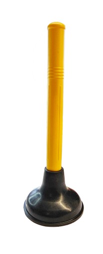 Przepychacz jest wyposażony w gumową końcówkę w kształcie lejka, co pozwala na efektywne udrażnianie przepływu w rurach. Druga strona narzędzia posiada plastikową rączkę ułatwiającą obsługę.