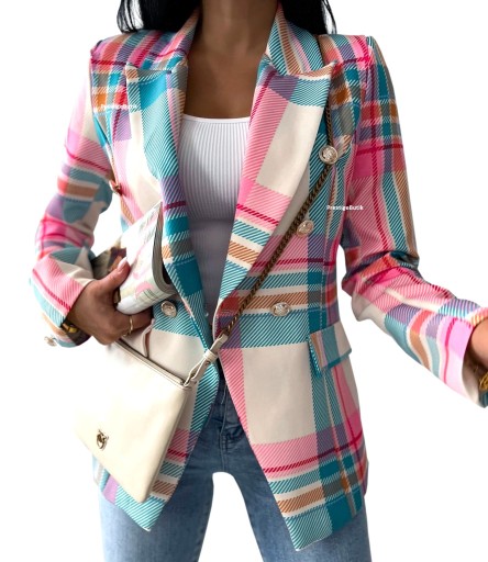 Итальянский жакет, жакет в клетку, бирюзовый, пуговицы S.
