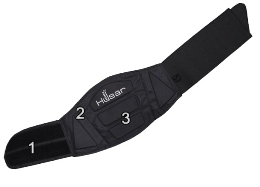 - drugie skrzydło pasa posiada szeroki panel rzepa, umożliwiający zapięcie przy zachowaniu dużego zakresu regulacji,