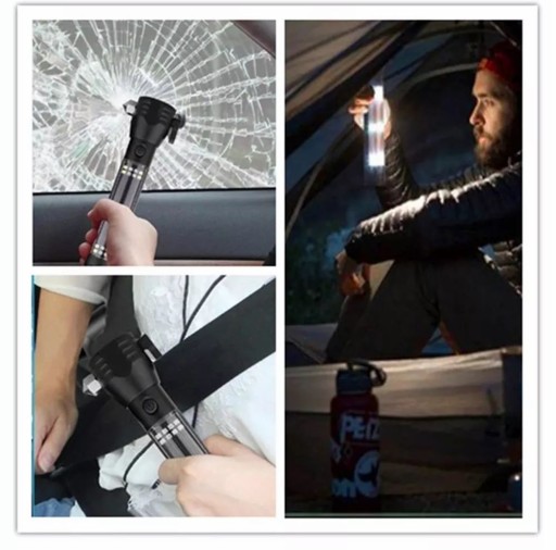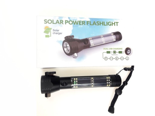 Latarka SOLARNA ratownicza: nóż, młotek, kompas, ŁADOWARKA, magnes.