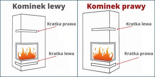 - Kratka górna - Luft prawy - wylot powietrza skierowany do dołu, bok krótszy znajduje się po prawej stronie, nad boczną szybą kominka - 2 sztuki