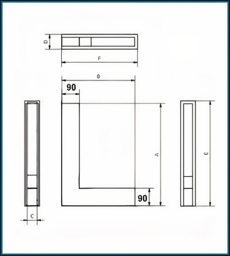 - Kratka górna - Luft lewy - wylot powietrza skierowany do dołu, bok krótszy znajduje się po lewej stronie, nad boczną szybą kominka - 2 sztuki