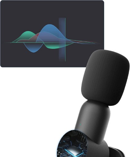 Inteligentny mikrofon pozwoli Ci nagrać dźwięk o wysokiej jakości. Wspierane przez sztuczną inteligencję urządzenie eliminuje przypadkowe hałasy, szum, zakłócenia. Układ dekodujący na bieżąco redukuje zbędne dźwięki, aby otrzymać czyste nagranie głosu.