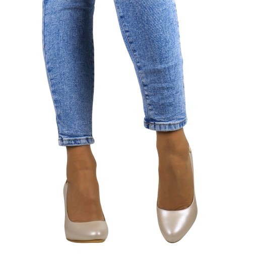 ELEGANCKIE CZÓŁENKA NA SŁUPKU WYGODNE BUTY DAMSKIE NUDE PERŁOWE