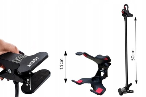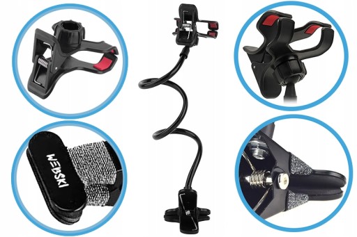 Wielofunkcyjny uchwyt marki WEBSKI ® do telefonu lub kamerki z mocowaniem klamrowym - do blatu stołu, biurka i innych.