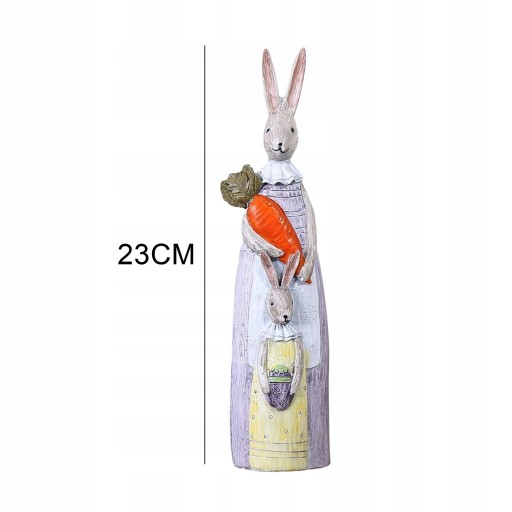 Figurka przedstawia uroczego zająca, który idealnie wpisuje się w atmosferę Wielkanocy. : Zając ozdobiony jest w pastelowe kolory, dodając świeżości i radości do otoczenia. Doskonale wpasuje się w różnorodne aranżacje wnętrz, tworząc wyjątkową atmosferę świąteczną. Figurka może pełnić różne funkcje dekoracyjne – doskonale sprawdzi się na stole świątecznym, półce czy komodzie. Może być również pięknym prezentem dla bliskich, dodającym uroku i radości w świątecznym okresie.