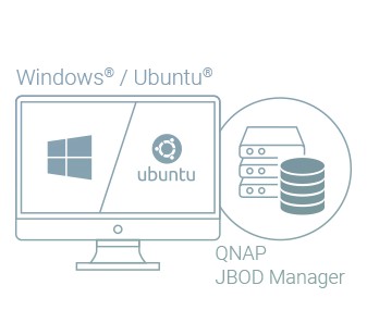 Łatwa obsługa. QNAP NAS i komputer PC mogą przy użyciu dedykowanego oprogramowania monitorować i pobierać informacje o JBOD, i nimi zarządzać.
