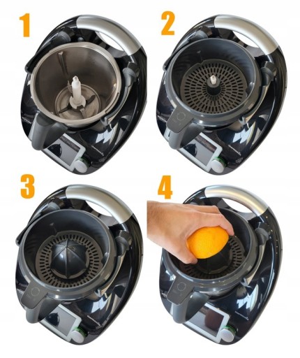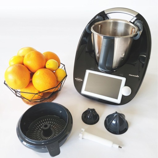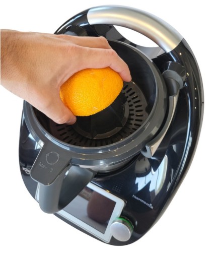 - Najwyższej jakości wyciskarka obrotowa do cytrusów zaprojektowana specjalnie do robota kuchennego Thermomix TM6 i TM5. Jest to bardzo efektywne rozwiązanie, które umożliwia łatwe i wygodne wyciskanie świeżego soku z takich cytrusów jak pomarańcze, grejpfruty, cytryny, limonki, mandarynki itp.