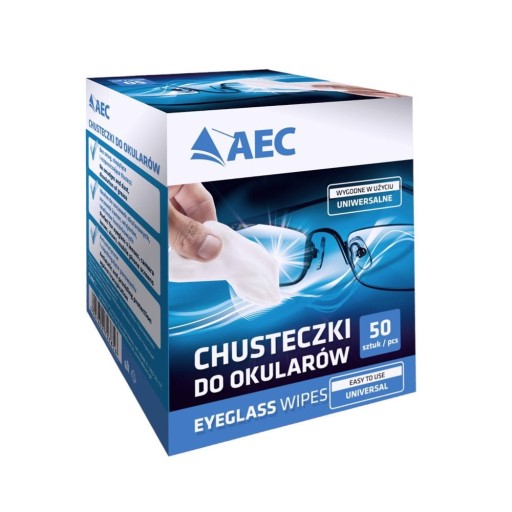 Chusteczki do okularów AEC 50szt. Antystatyczne, bezpyłowe chusteczki do okularów Zapobiegają parowaniu, nie pozostawiają smug, łatwo usuwają tłuszcz i brud. Świetnie nadają się do okularów, obiektywów, wizjerów, telefonów komórkowych, lusterek samochodowych. Cena za 1 pudełko 50 szt.