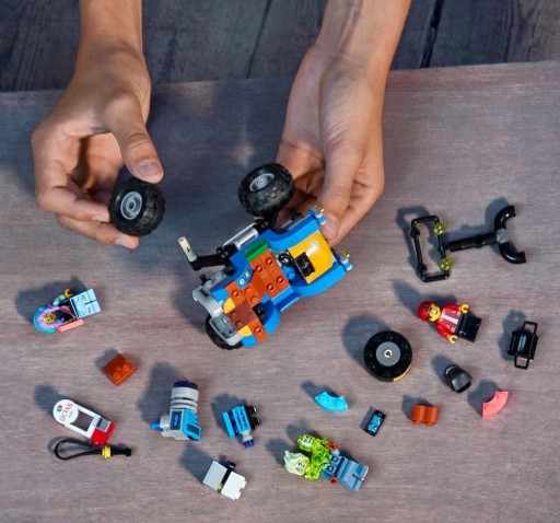 - Zabawkowy plażowy łazik LEGO zmienia się, gdy oglądasz go na ekranie urządzenia z aplikacją LEGO AR. W nawiedzonym cyfrowym świecie dzieciaki mogą zapolować na duchy, zająć się odkrywaniem i rozwiązywaniem zagadek albo zmierzyć się z potężnym duchem Truckerem Dale'em.