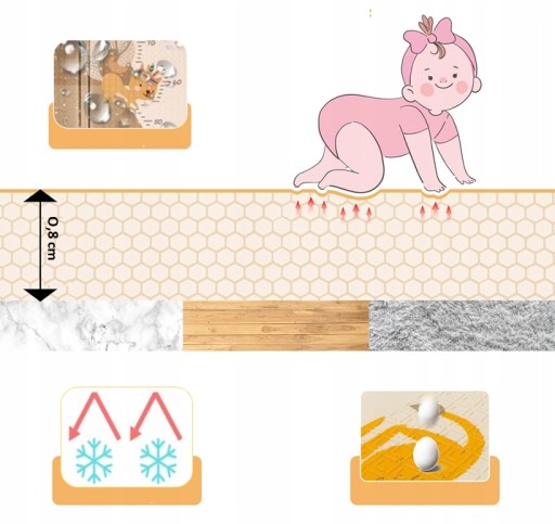 ✅wykonana jest z bezpiecznej dla dzieci pianki XPE, która zapewnia izolację termiczną od zimnej podłogi, oraz zamortyzuje przed ewentualnym upadkiem na twardą podłogę