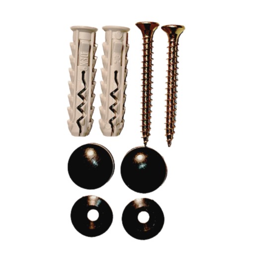 W komplecie komplet kołków do mocowania oraz zaślepek maskujących całkowicie wkręty.