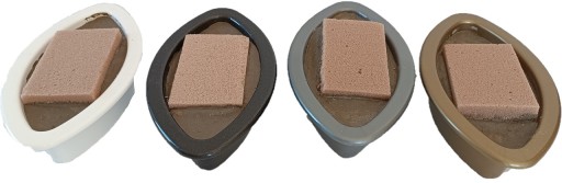 Miska tzw. łódka koloru grafitowego obciążona zaprawą cementową i suchą kostką oasis umieszczoną na środku.