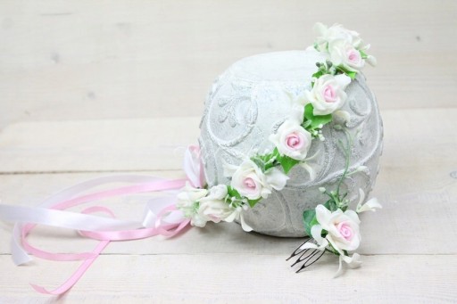 grzebyku, można wpiąć ją w tył wianuszka by był bardziej okazały.