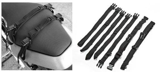Możliwość montażu do każdego typu motocykla. W zestawie kolplet pasków mocujących.