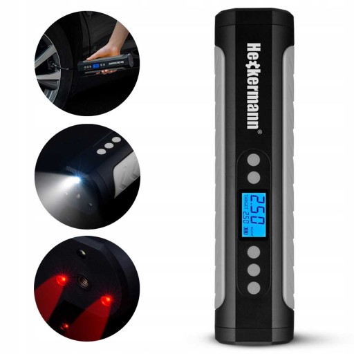 Przenośna sprężarka do opon to rewelacyjne urządzenie, które będzie przydatne nie tylko podczas wyjazdów na wakacje, czy wycieczek rowerowych. Urządzenie sprawdzi się również w codziennych sytuacjach - podczas pompowania piłki, bądź różnych zabawek dmuchanych. Zaletą naszego kompresora jest wysoka jakość wykonania, bezprzewodowość, a także duża wydajność, jak na tak małe urządzenie. Na czytelnym wyświetlaczu LCD można odczytać poziom ciśnienia powietrza w oponie. Urządzenie posiada przełącznik jednostek, co ułatwi pracę. Jednak jedną z najciekawszych funkcji jest automatyczne pompowanie i wyłączanie się po osiągnięciu wybranego wcześniej ciśnienia.