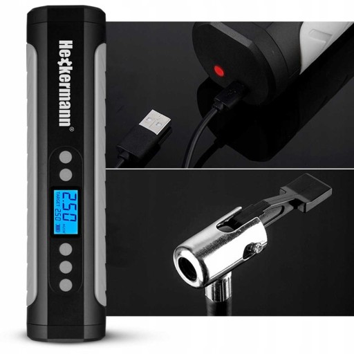 Nasz automatyczny kompresor ma szerokie zastosowanie. Można go wykorzystać do opon w samochodach osobowych oraz jednośladach, jak i również do pompowania sprzętu sportowego (piłki) lub zabawek dmuchanych i basenów. Wszystko za sprawą dołączonych igieł oraz końcówek o różnych rozmiarach. Co ważne, sprężarki można używać bezprzewodowo. Wbudowany akumulator ma pojemność równą 2000 mAh, a zasilanie baterii odbywa się przy pomocy dołączonego przewodu USB. Dzięki temu, łatwo naładować akumulator używając do tego ładowarki od smartfona, power banku lub innego urządzenia z kompatybilnym portem.