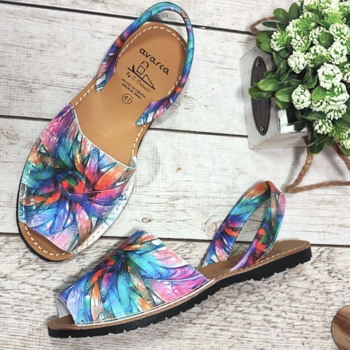 Produkowane ręcznie, tradycyjne sandały damskie wytwarzane od pokoleń w Hiszpanii. Do ich produkcji używa się wysokogatunkowych materiałów. Krój sprawdzony przez pokolenia zapewnia komfort w gorące letnie dni. Bardzo elastyczna podeszwa właściwie układa się pod stopą w trakcie ruchu. Wykonane ze skóry naturalnej paski dobrze przytrzymują obuwie na nogach, a ich specjalna konstrukcja i właściwy kont mocowania sprawiają że nie zsuwają się z pięt. Skórzany wierzch sandałów doskonale dopasowuje się do kształtu stopy i gwarantuje wyjątkowy komfort w trakcie chodzenia. Wspaniały wybór na nadchodzące lato!