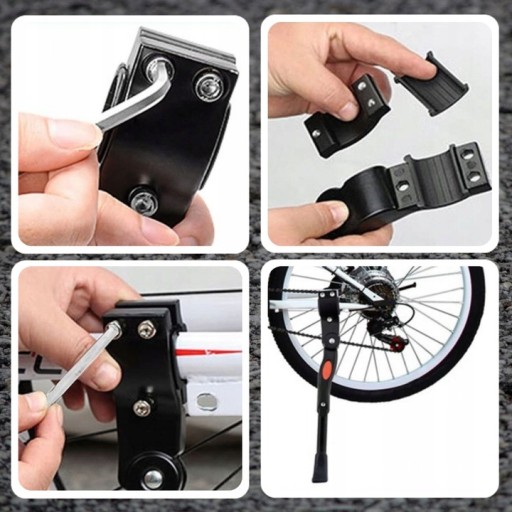 - Aluminiowa nóżka rowerowa mocowana na tylną rurę ramy będzie pasowała do każdego typu rowerów, nawet mających system hamulców tarczowych.
