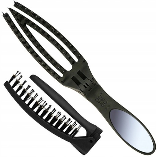 Olivia Garden Smooth&Style On The Go – ta szczotka to prawdziwa rewolucja w pielęgnacji włosów. Wyprodukowana została przez firmę Olivia Garden, która od wielu lat specjalizuje się w produkcji akcesoriów do pielęgnacji włosów. Unikatowy kształt i rewolucyjna budowa sprawiają, że jej użytkowanie jest niezwykle przyjemne. Lusterko umieszczone na rączce ułatwia nam stylizację i sprawia, że łatwo poprawimy fryzurę w każdych okolicznościach. Dzięki składanej rączce łatwo zmieścimy ją w torebce. Antystatyczna główka zapobiega elektryzowaniu się włosów. Precyzyjne ząbki doskonale rozczesują nawet mocno splątane pasma.