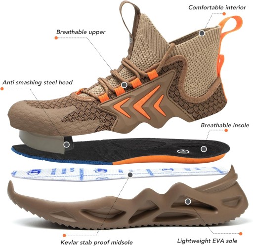 - Wygodne i oddychające: buty robocze mają lekką podeszwę, która jest lekka i wygodna, aby zapewnić stopom maksymalny komfort. Oddychająca tenisowa cholewka zapewnia oddychalność butów, a także zapewnia świeżość i wygodę stopom po długim dniu w pracy.