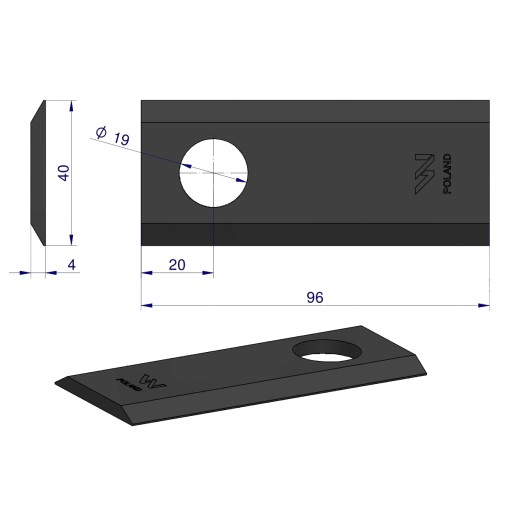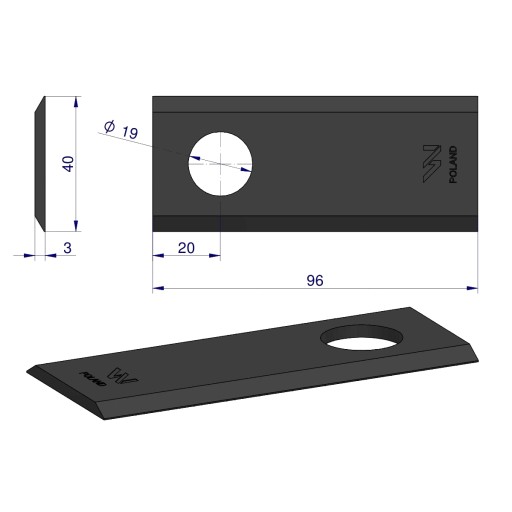 Nóż kosiarki polskiej 94x40x3mm fi19 1szt.