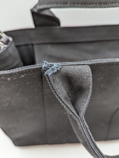 - Wady: Torebka posiada zapach. Przybrudzenie po wewnętrznej stronie i na boku. Nacięta rączka. Brak paska.