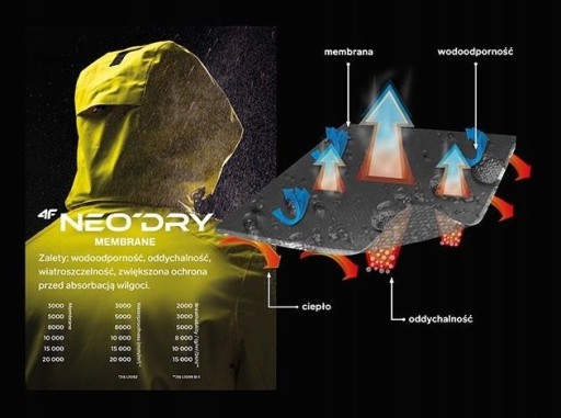 membrana Neodry 5000/3000 chroni przed opadami deszczu