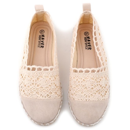 BEŻOWE ESPARDYLE DAMSKIE KORONKOWE PÓŁBUTY WSUWANE TENISÓWKI PŁASKIE LEKKIE